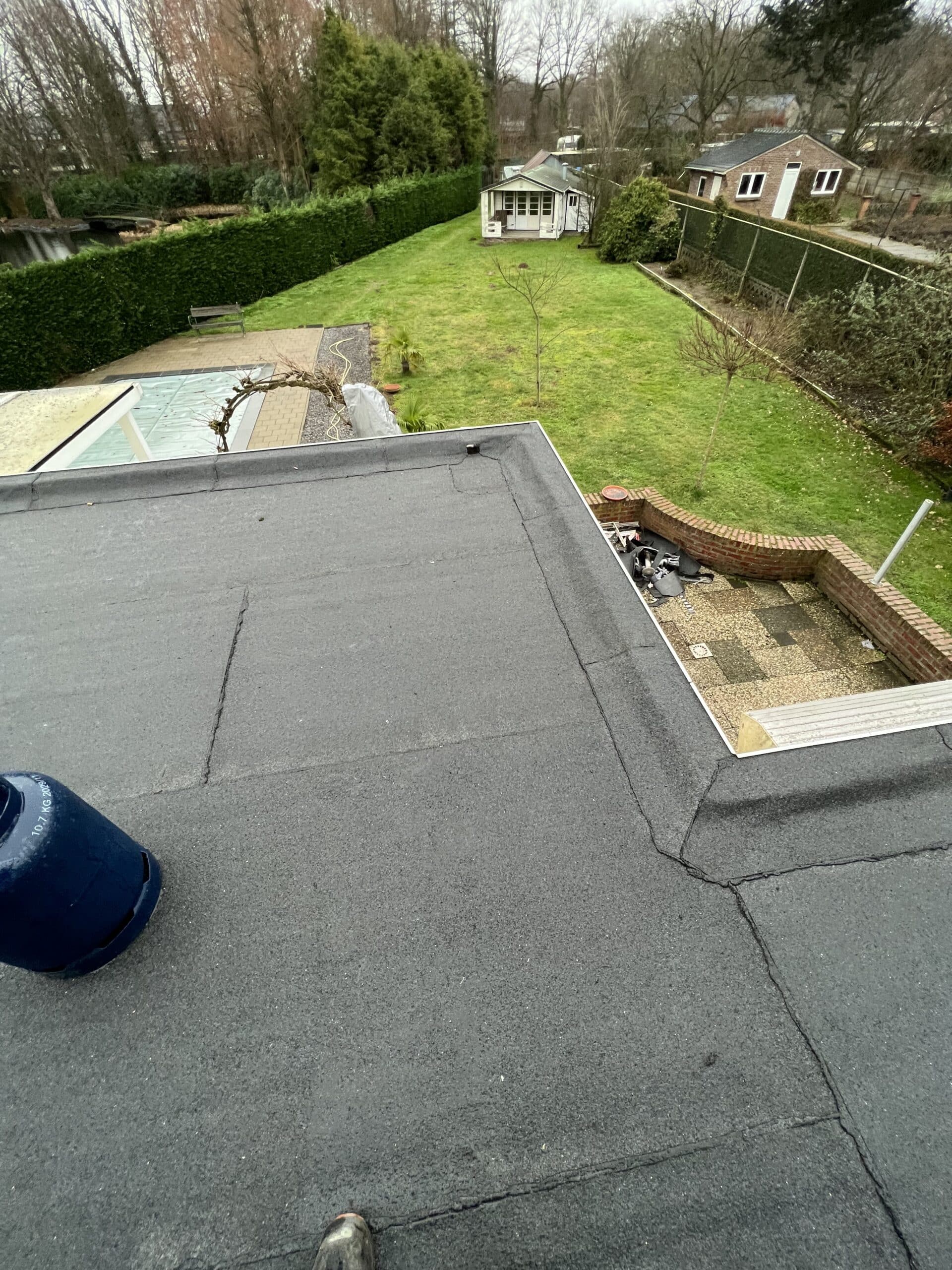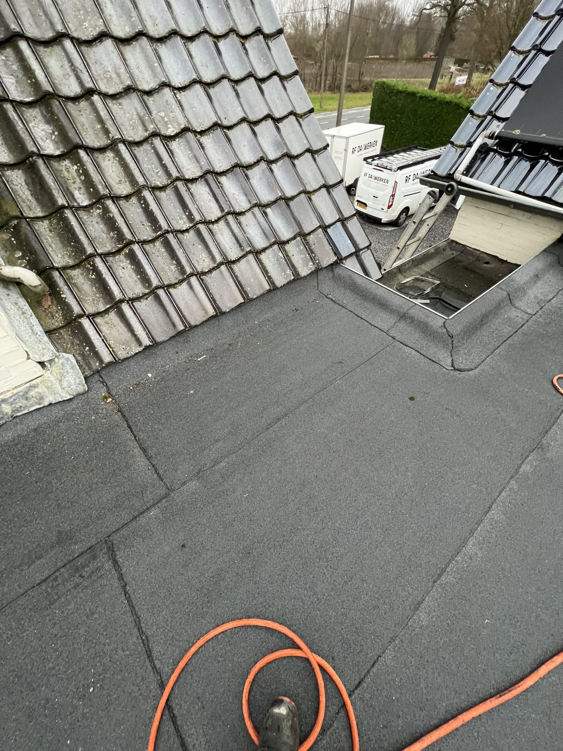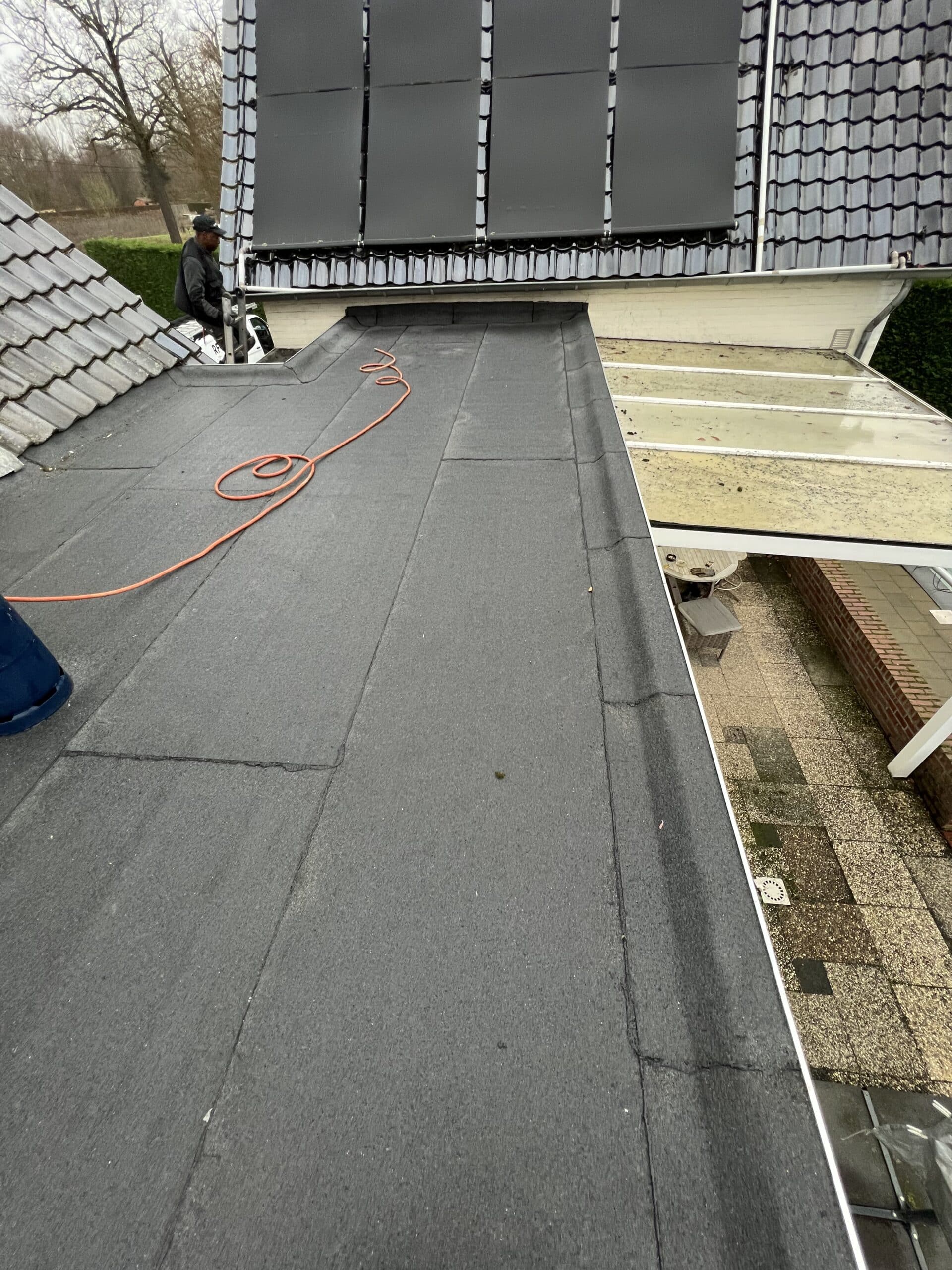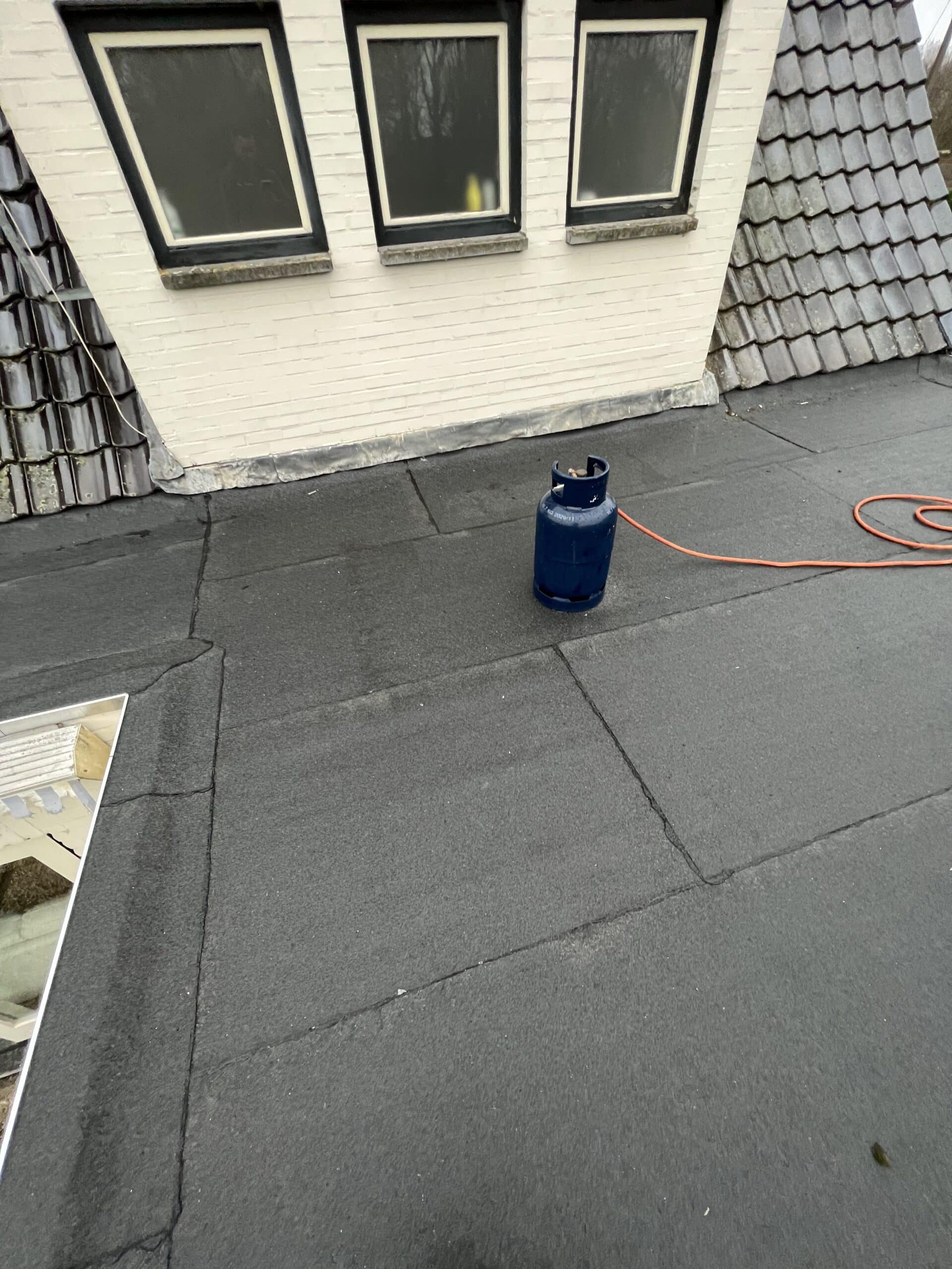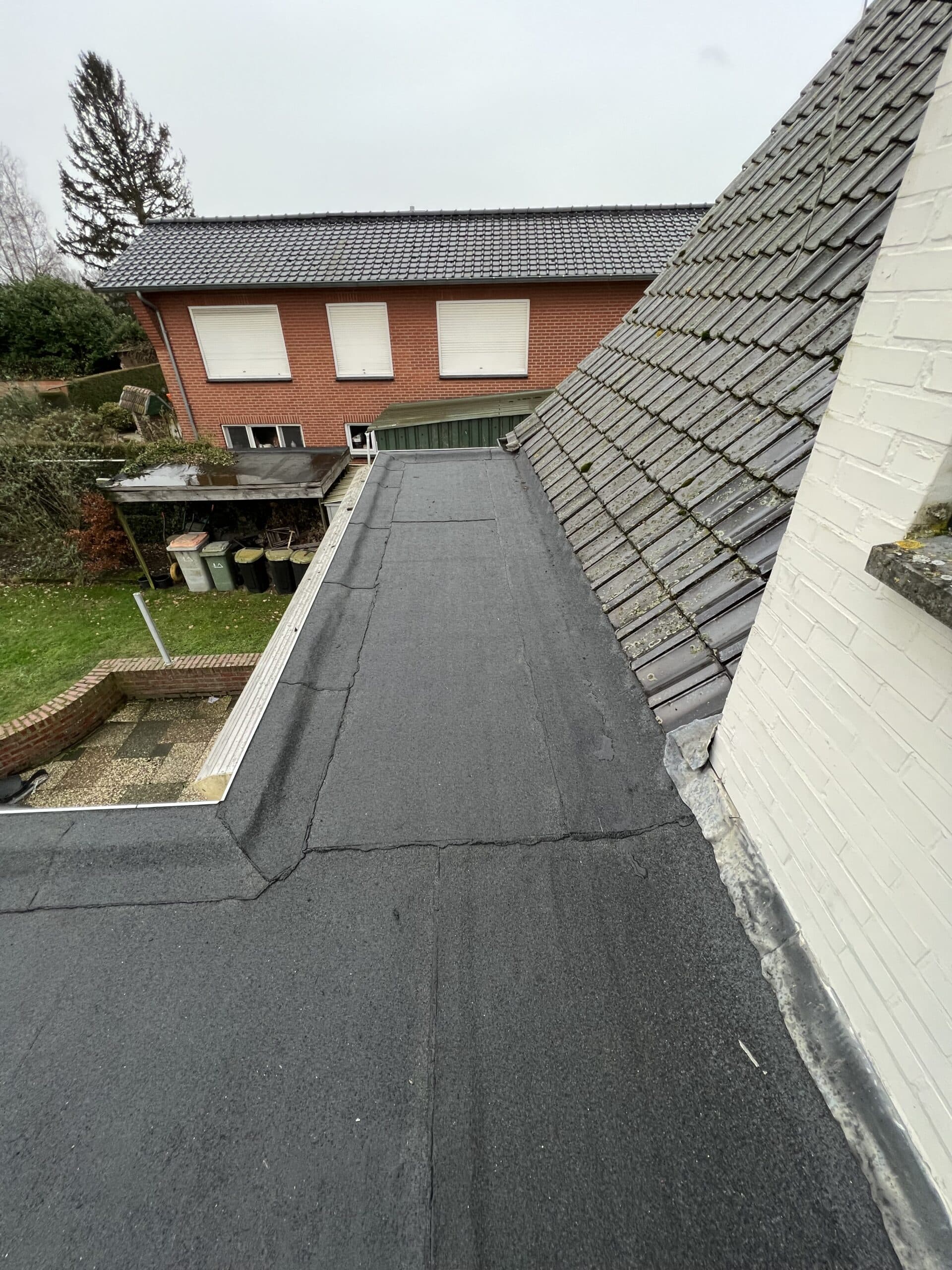 Er is een nieuwe toplaag bitumen dakbedekking met minerale afwerking aangebracht op beide daken. Tegen de muurzijde is, als extra versteviging van de dakrand, een aluminium knelstrip bevestigt. Met deze oplossing kan het dak er weer tientallen jaren tegenaan.