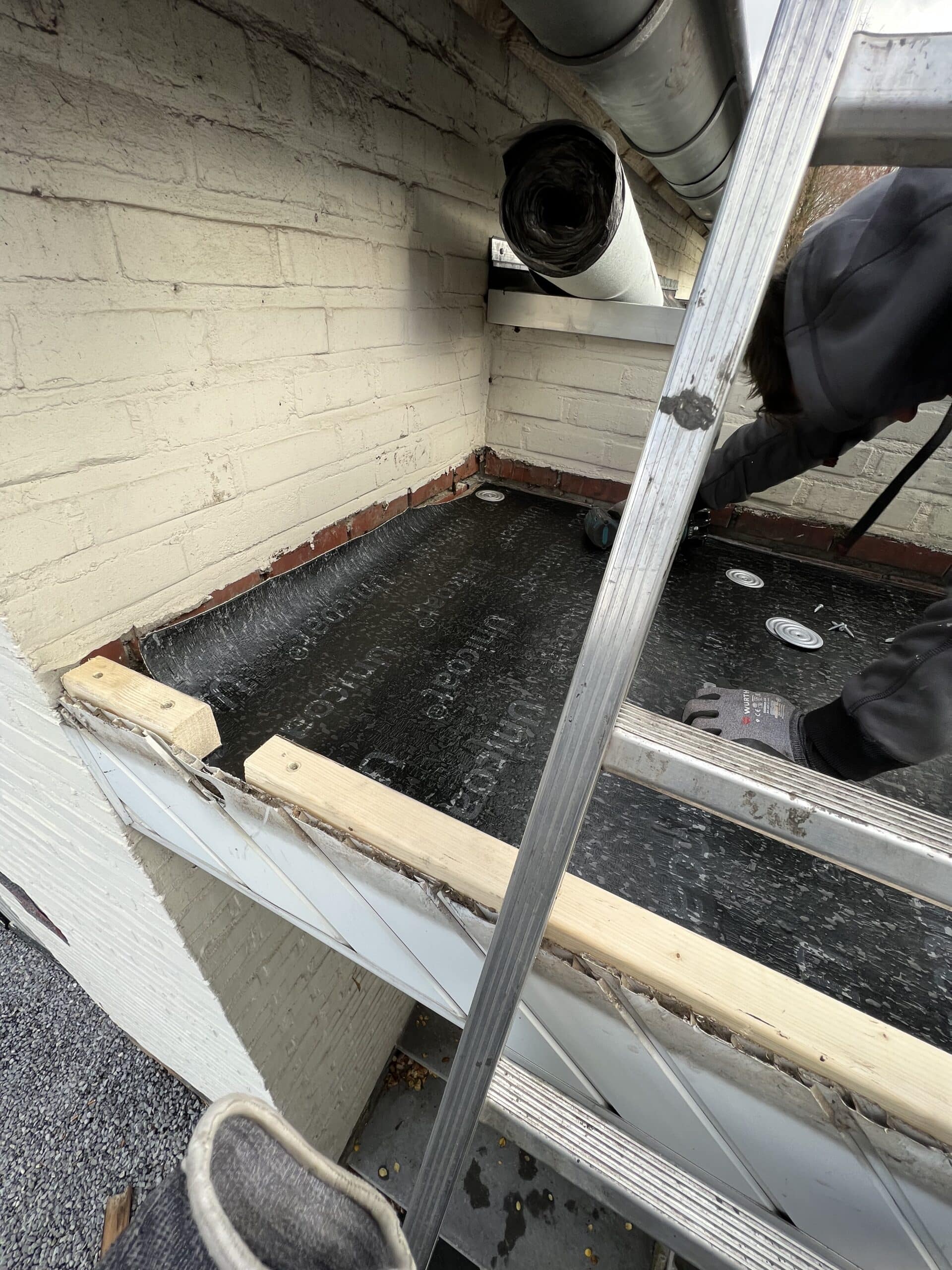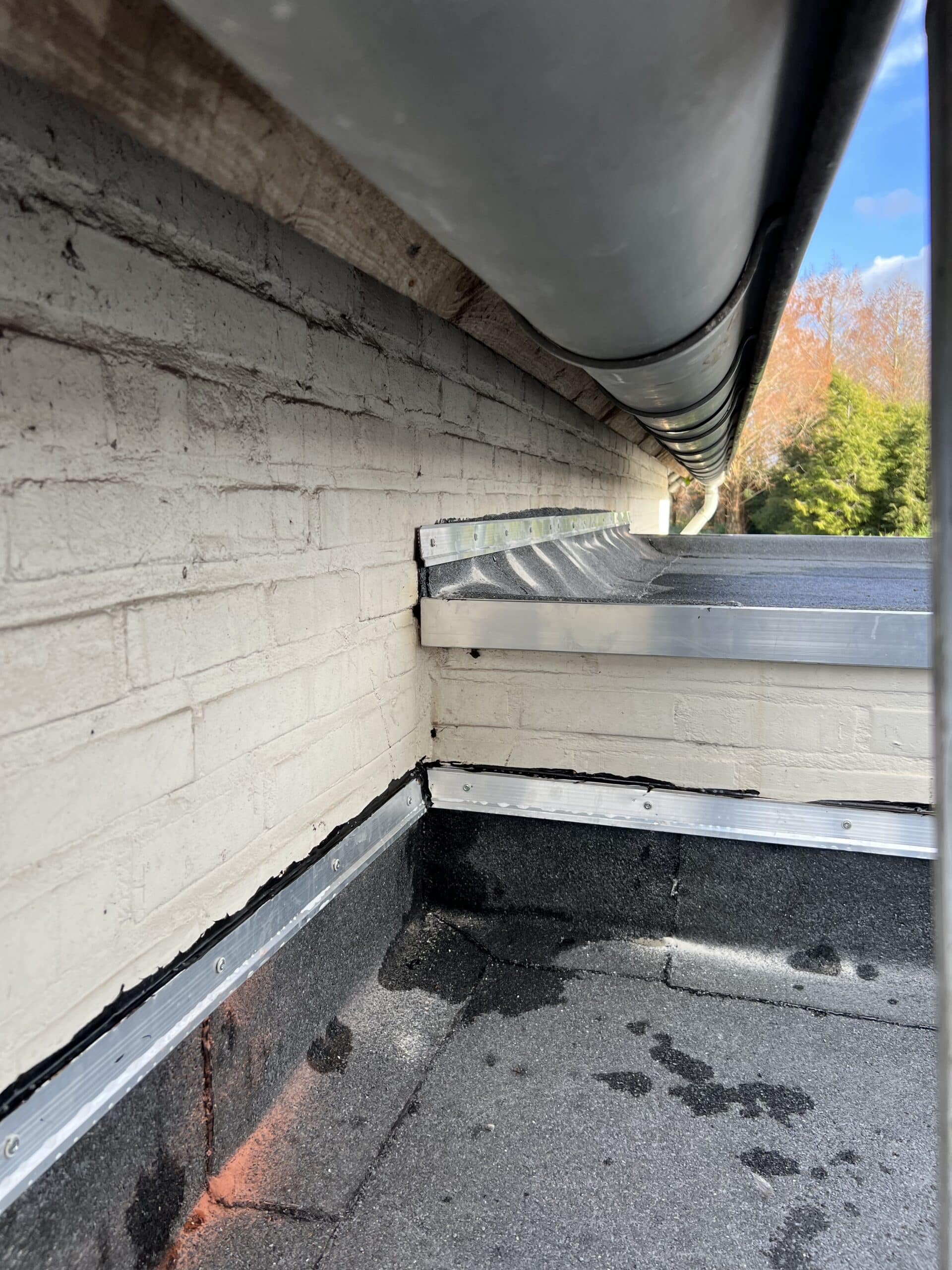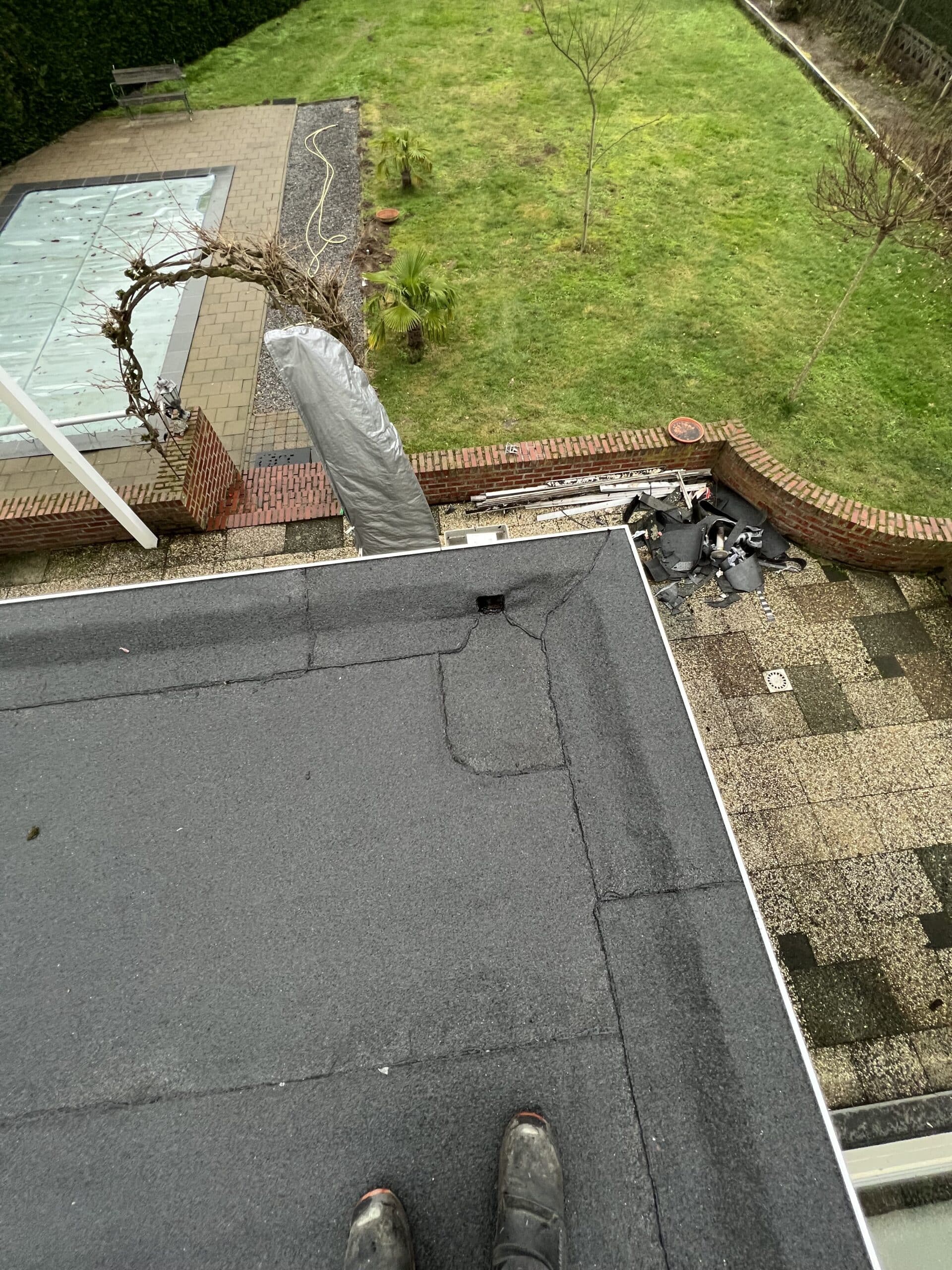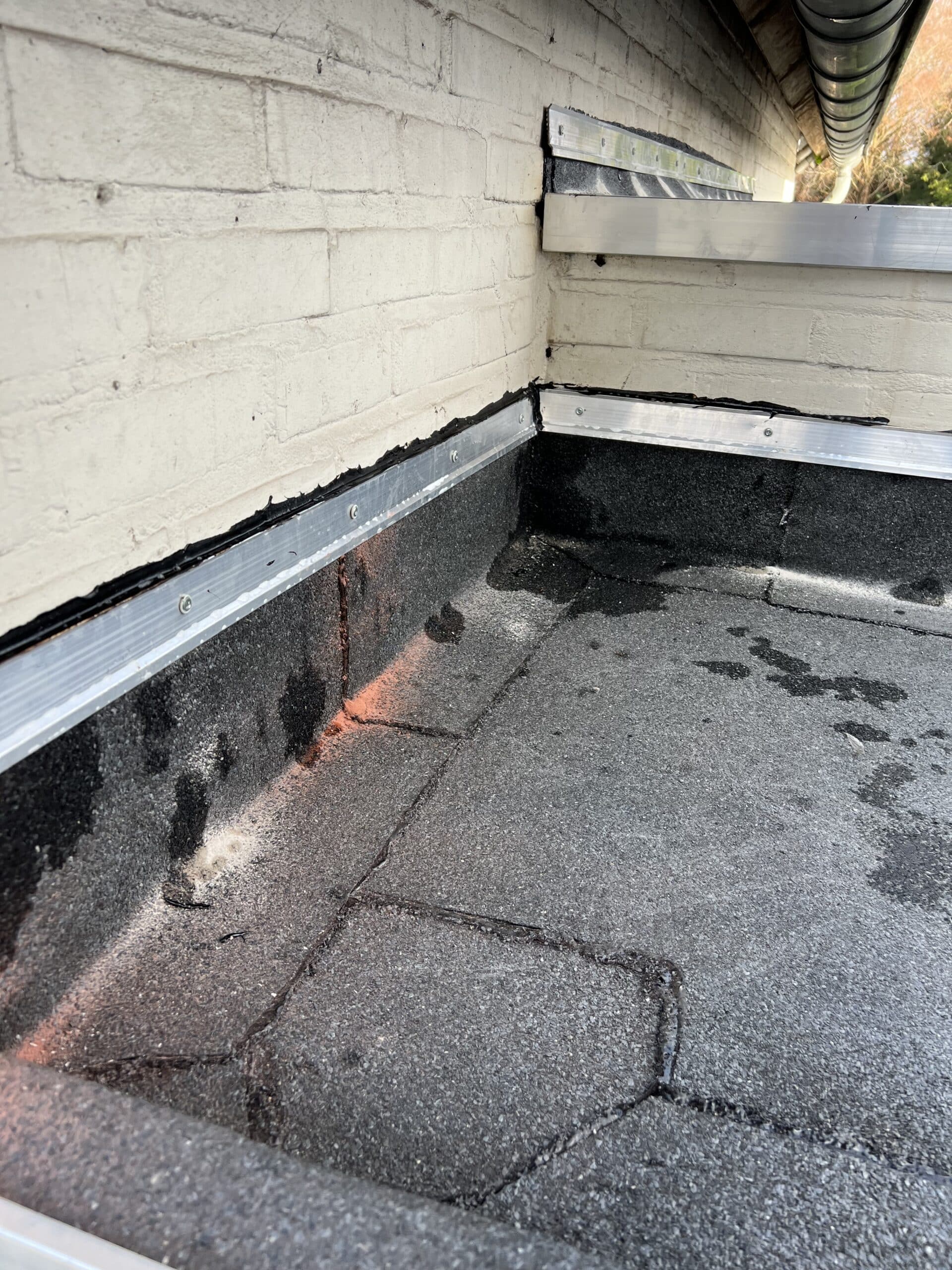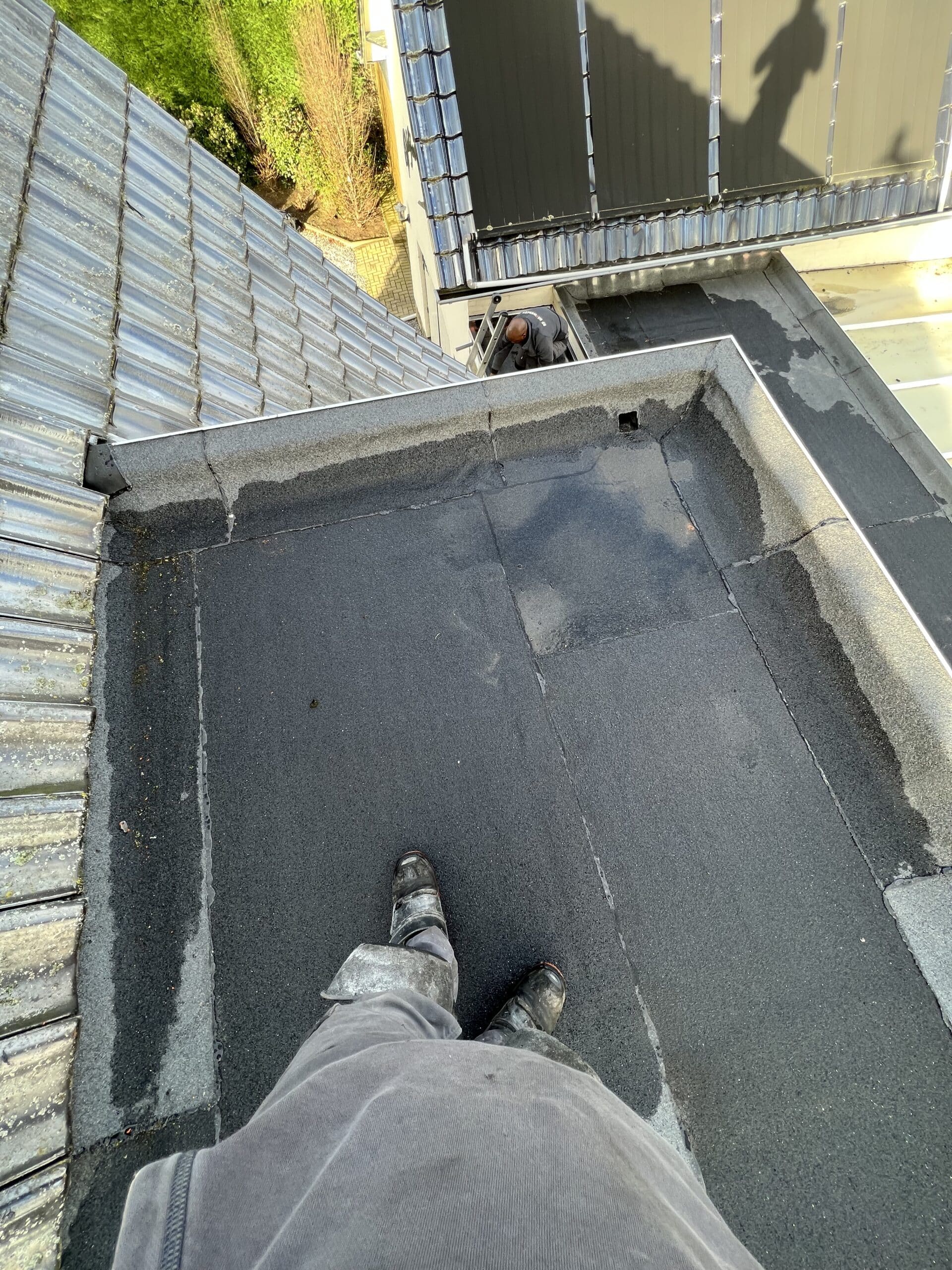 Er is een nieuwe toplaag bitumen dakbedekking met minerale afwerking aangebracht op beide daken. Tegen de muurzijde is, als extra versteviging van de dakrand, een aluminium knelstrip bevestigt. Met deze oplossing kan het dak er weer tientallen jaren tegenaan.