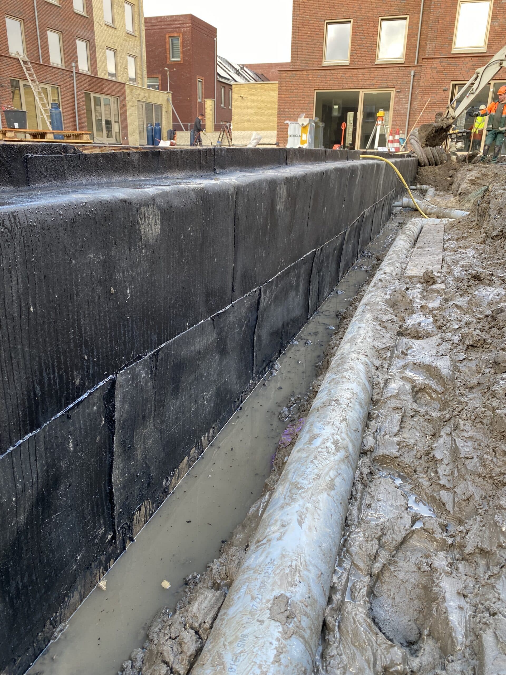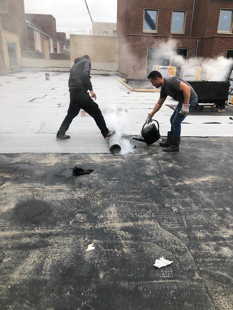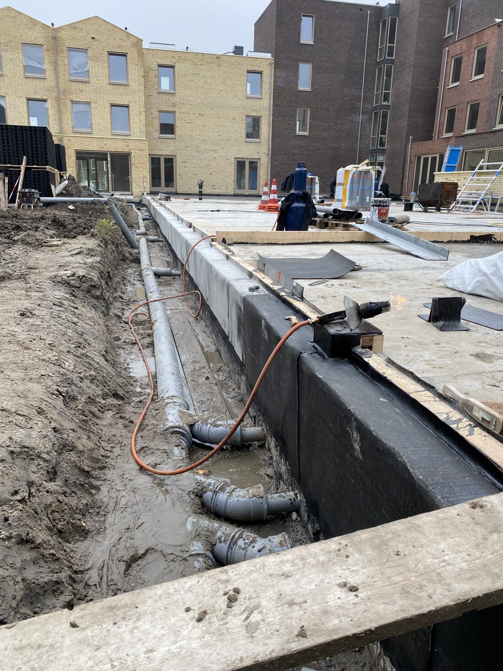 Voor dit nieuwe appartementencomplex in Utrecht is de binnentuin volledig waterdicht gemaakt. Het daksysteem is voorzien van hoogwaardige derbigum dakbedekking en aangebracht met vloeibare bitumen. Deze methode geeft de garantie dat de dakbedekking tientallen jaren waterdicht zal blijven.